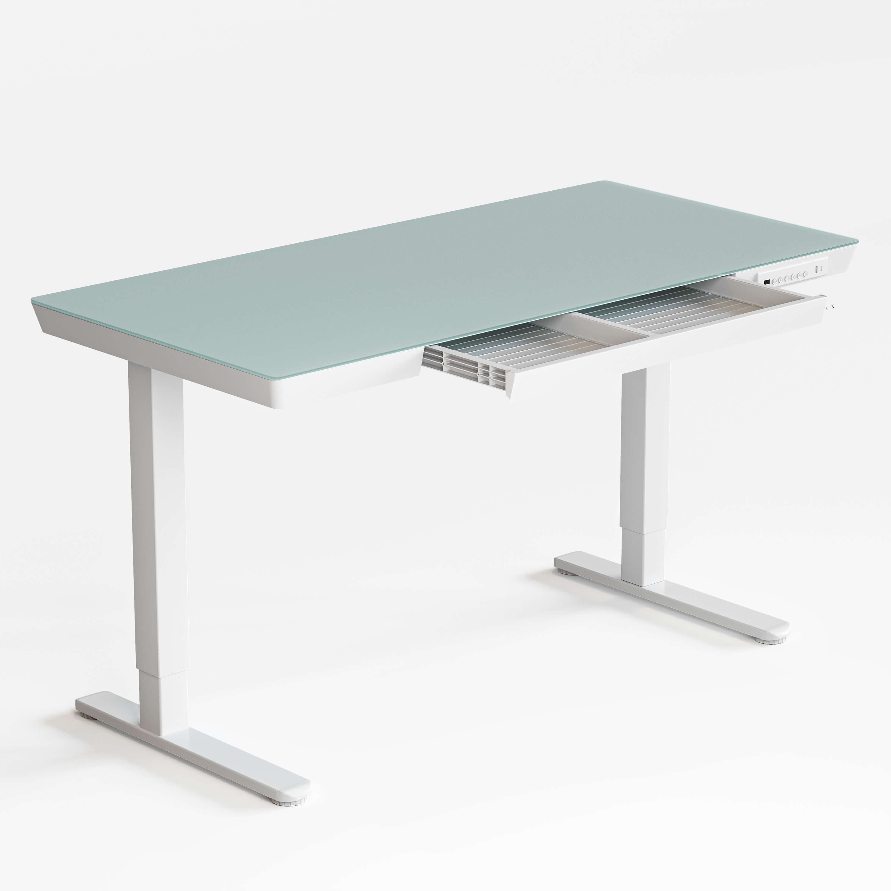 Glass Standing Desk with Drawer